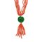 a sei fili di sfere in corallo colore salmone mm. 3,00 circa con medaglione tondo in giada scolpito a soggetto orientale e mappina.