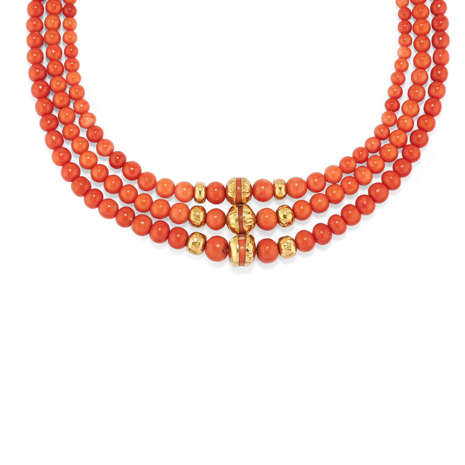 a sfere di misure diverse, da mm 13,00 - 3,00, con fermezza ed intercalari in oro giallo 18K.