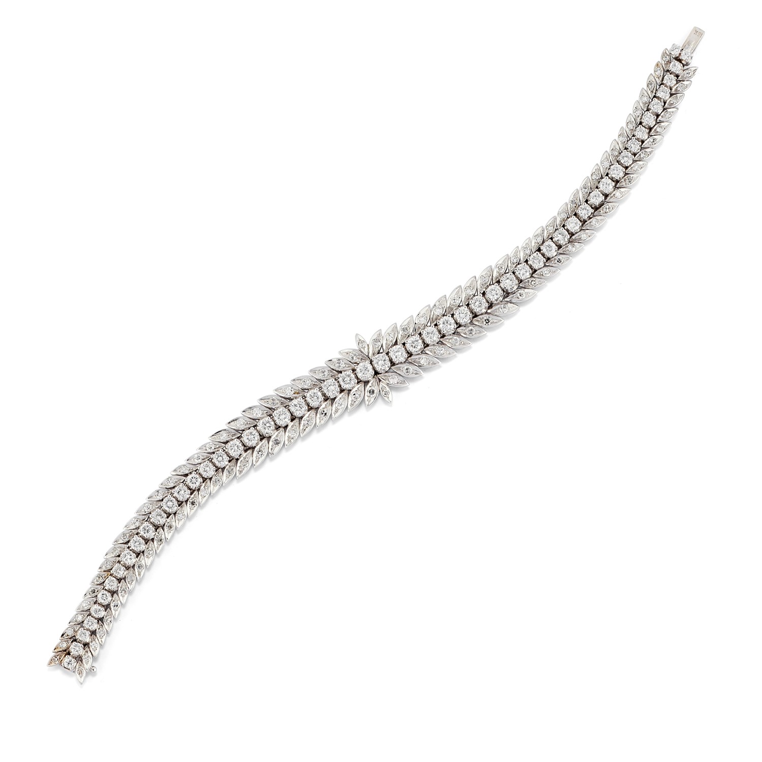 in oro bianco 18K, a motivo spigato interamente decorato da diamanti taglio brillante per totale ct 5,50 circa, snodato.