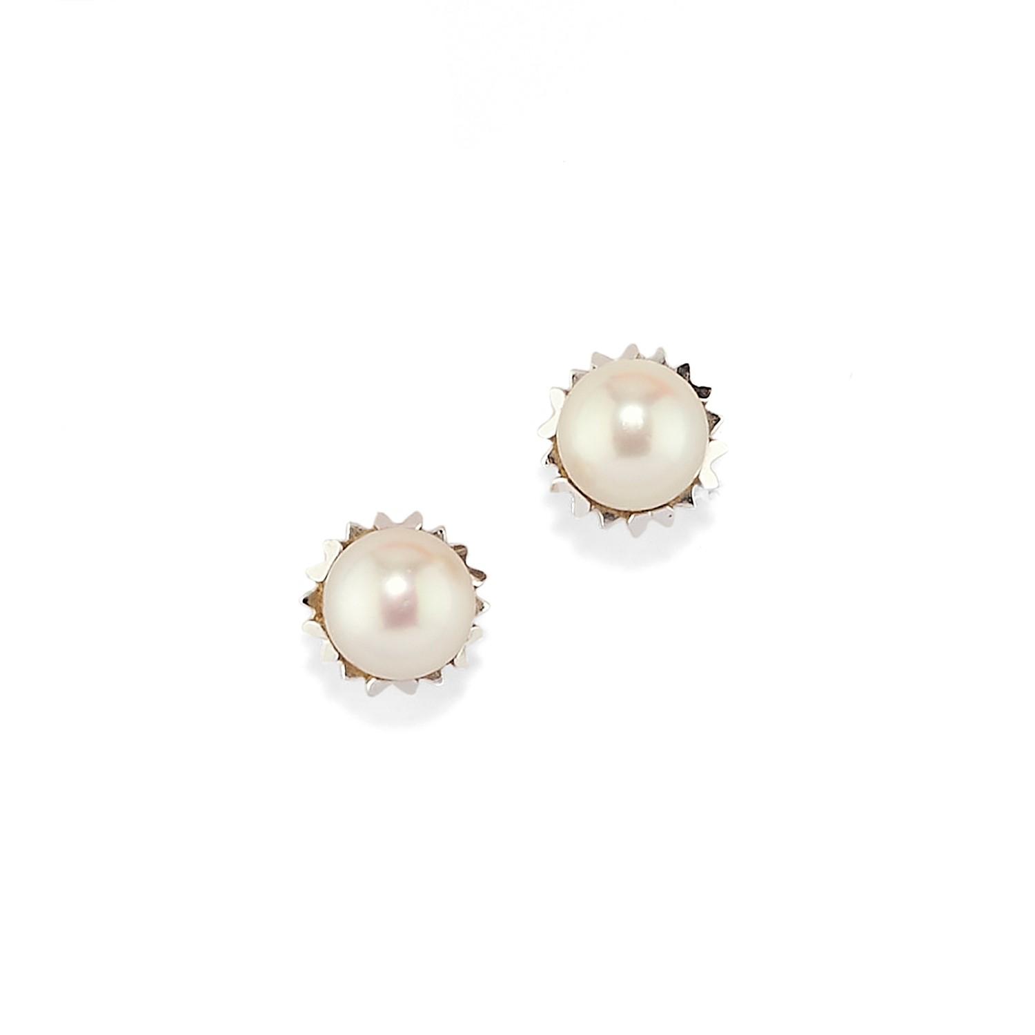 in oro bianco 18K e perle coltivate di mm 7,50, con chiusura a vite.