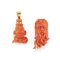in oro giallo 18K, corallo rosso-arancio, scolpiti a clown e volto maschile.
