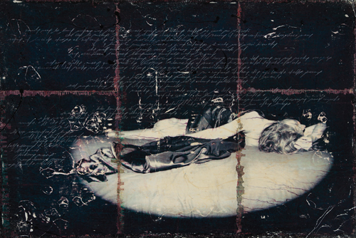 HYENA Novellara (RE) 24/12/1965  Senza titolo, 2007 tecnica mista su tela cm. 80x120, timbro dell'artista e firma in ceralacca, firma e anno al retro, dichiarazione d'autenticità dell'artista allegata, pubblicato sul catalogo della mostra "Hyena, passione atto II" tenutasi presso la Galleria d'Arte Orler, pagina 11, opera priva di cornice.