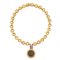 in oro giallo 18K, con catena che trattiene pendente centrale con moneta romana e decorato con rubini taglio carré e diamanti taglio brillante.