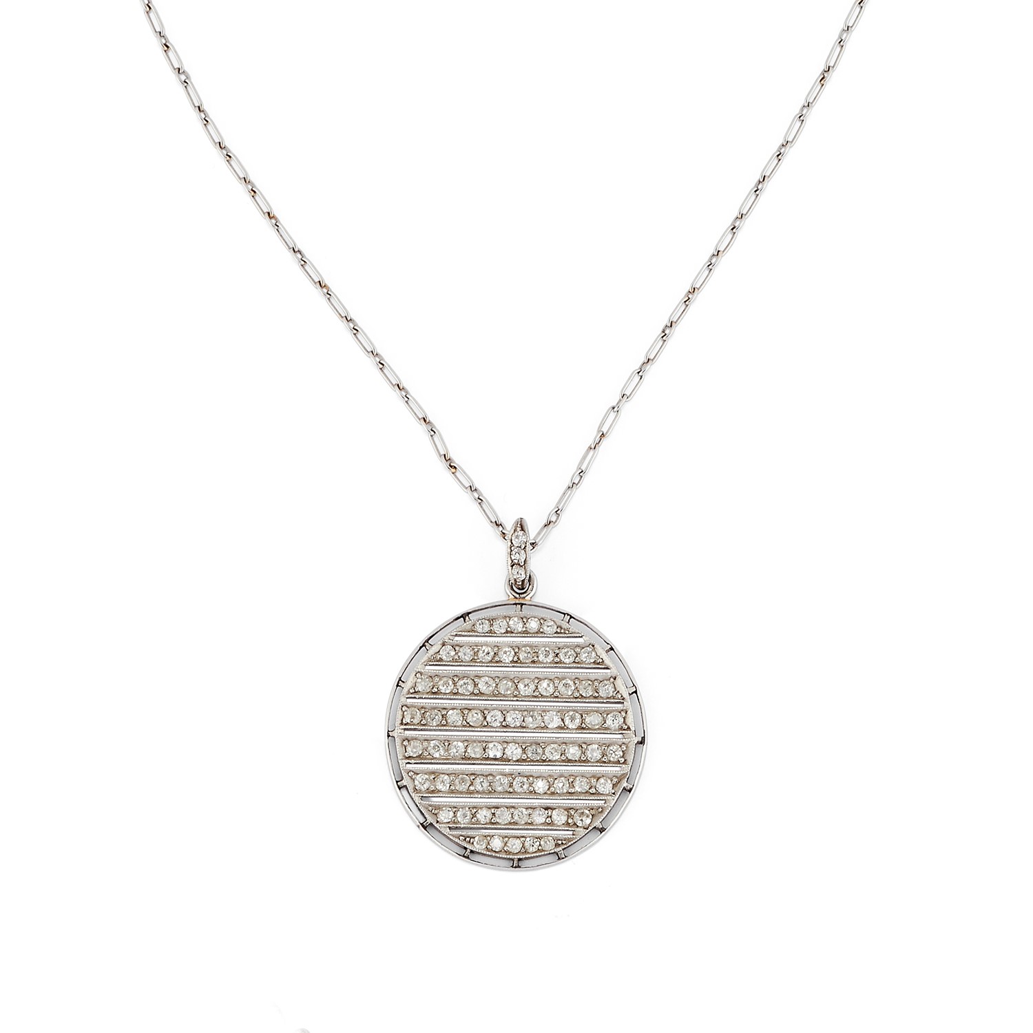 in platino e diamanti taglio vecchio, di forma rotonda.