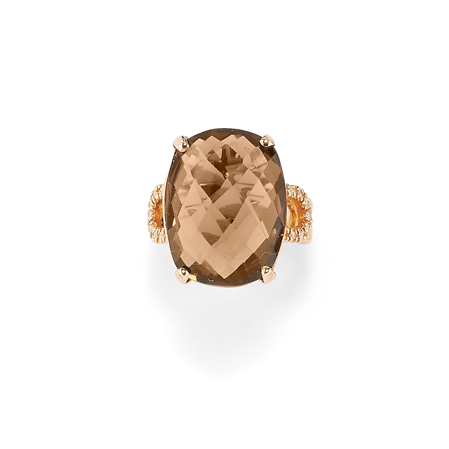 in oro rosso 18K, topazio fumé taglio briolette e diamanti taglio brillante.
