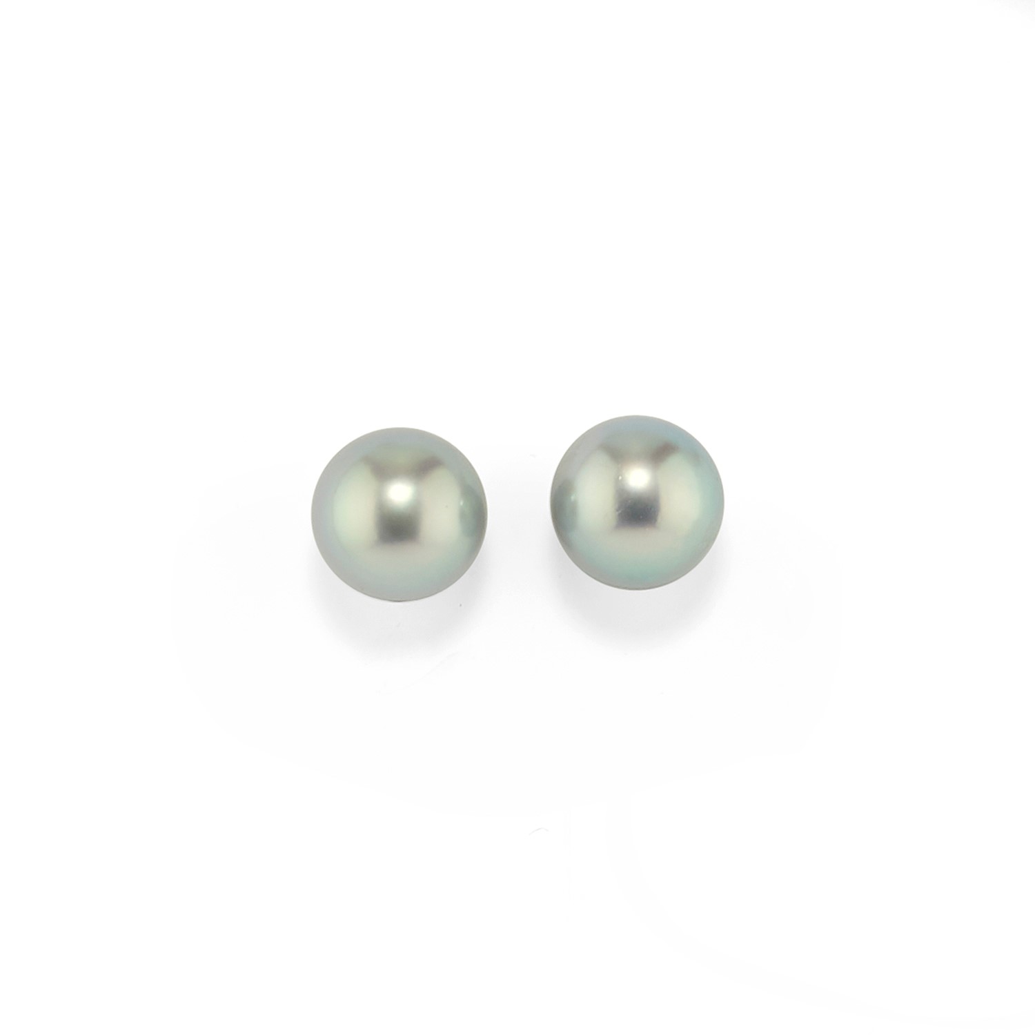 in oro giallo 18K, perle coltivate di colore grigio-argento, chiusura con perno e farfalla, firmati Mikawa.