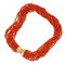in oro giallo 18K, realizzata a quattordici fili di corallo rosso di mm 3,50 circa, a torchon.