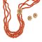 in oro giallo 18K, realizzata a tre fili di barilotti disposti a degradé da mm 13,00-3,00, diamanti taglio vecchio e brillante per totale ct 1,60 circa, composta da collana e orecchini con chiusura a clip, difetti (un diamante di un orecchino mancante).