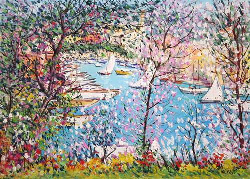 ANTONIO IALENTI Campobasso 12/07/1937  Veduta di Portofino, 1993 olio su tela cm. 50x70, firma in basso a destra, titolo, firma e anno al retro, dichiarazione d'autenticità dell'artista su foto.
