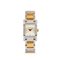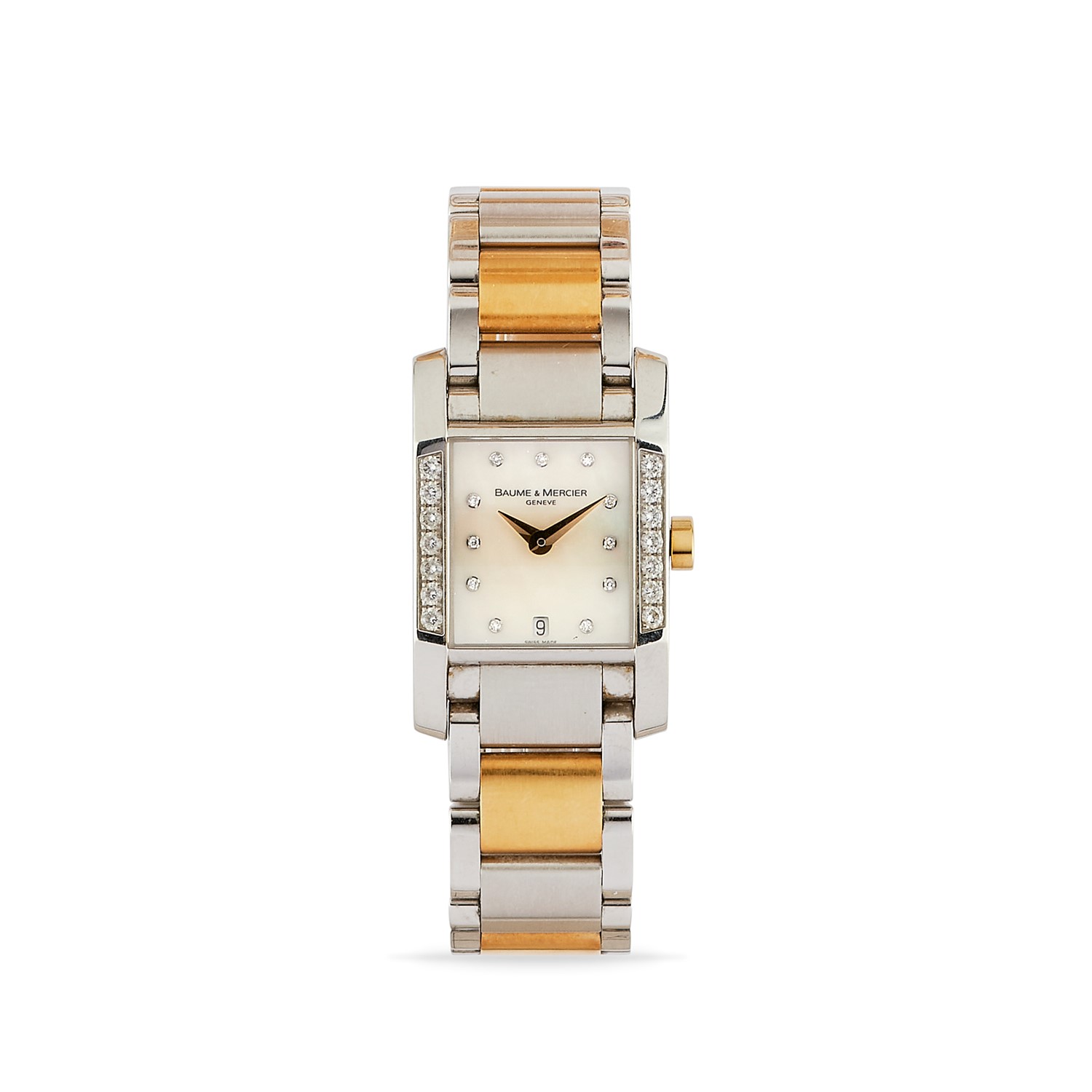 cassa rettangolare, quadrante in madreperla con indici applicati in diamanti, data al 6, movimento al quarzo.