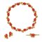 in oro giallo 18K e corallo taglio ovale cabochon, composta da collana, spilla e orecchini, con chiusura con clip.