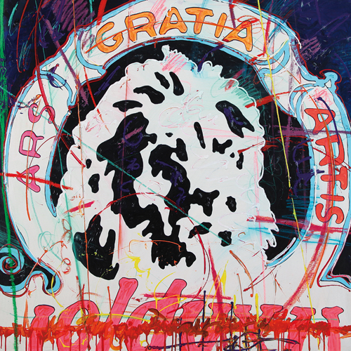 ENRICO MANERA Asmara (Etiopia) 04/04/1947 Metro Goldwin Mayer, 1987 smalti e acrilici su tela cm. 144x144, firma, titolo e anno al retro, dichiarazione d'autenticità dell'artista su foto, opera priva di cornice.
