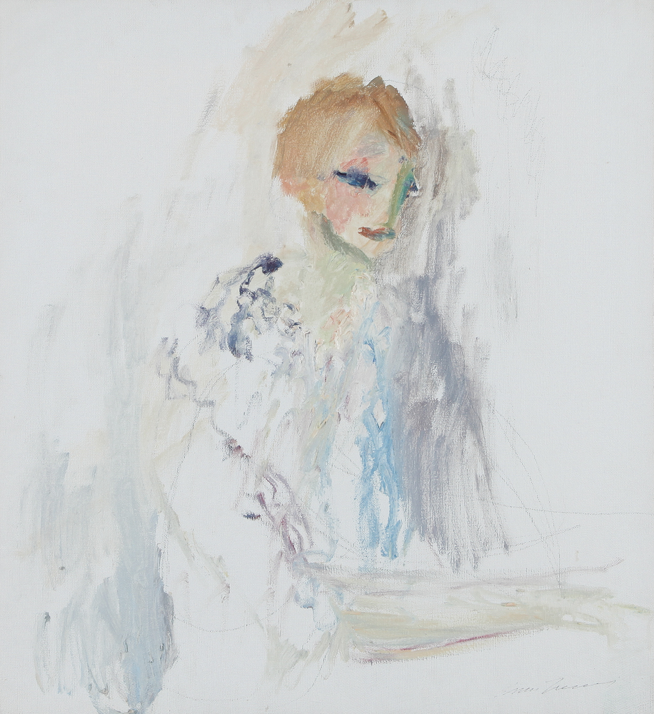 ERNESTO TRECCANI Milano 26/08/1920 - Milano 27/11/2009 Figura olio su tela cm. 60x55, firma in basso a destra e al retro, certificato d'autenticità del Comitato per la tutela delle opere di Ernesto Treccani allegato.
