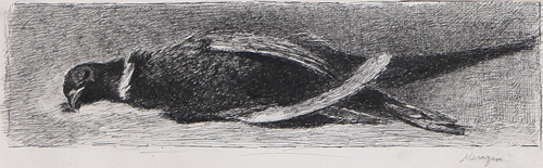 FRANCESCO MENZIO Tempio Pausania (Ss) 03/04/1899 - Torino 28/11/1979 Uccello morto, (1940-45) disegno a china su carta cm. 10x30, firma in basso a destra, opera registrata al numero 1237 presso l'Archivio per il Catalogo Generale di Francesco Menzio come da dichiarazione del figlio Paolo su foto.