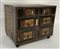 Stipo lastronato e intarsiato in legni vari. Fronte a un cassetto grande e quattro più piccoli. Piedi torniti (cm 44x37x33) (difetti e mancanze)