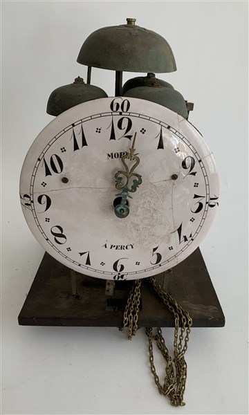 MOREL A PERCY Orologio a gabbia a tre treni e quattro campane. Quadrante in sma