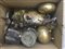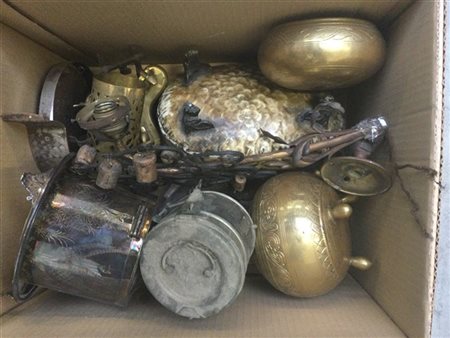 Cartone contenente numerosi oggetti in ottone e metalli diversi (difetti)