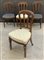 Gruppo di quattro sedie in noce con schienale a giorno a listelli, gambe anteriori rastremate (difetti)