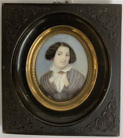 Ignoto dell'inizio del secolo XIX "Ritratto di gentildonna" miniatura ovale (cm 6x5) In cornice