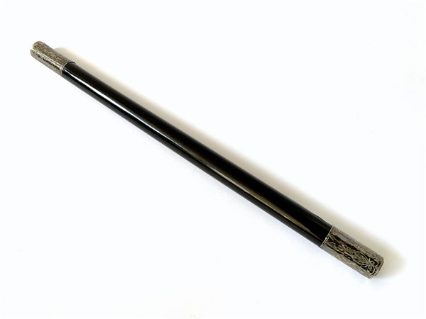 Bastone in legno laccato con ghiere in argento inciso a motivi vegetali stilizzati e con data 1876 (l. cm 34) (lievi difetti)