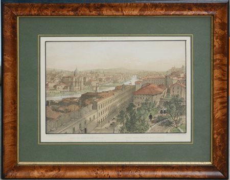 Incisione a colori raffigurante Roma dal Monte Gianicolo (mm 300x500 circa) In