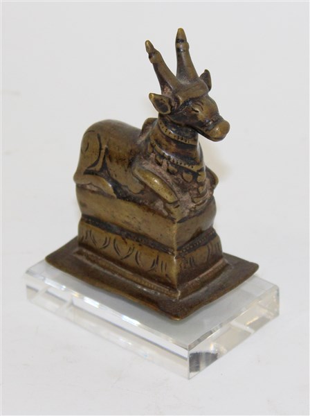 Manifattura sud est asiatico capretta in bronzo, su base in plexiglass secolo X