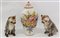 Lotto composto da due sculture raffiguranti "Cani" ed un vaso con coperchio in