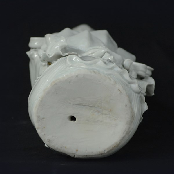 Guanyin in porcellana bianca assisa su fiore di loto (difetti e restauri)