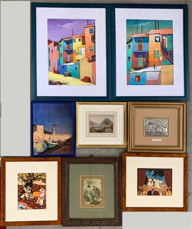 Cartone contenente undici tra incisioni e riproduzioni diverse (difetti)