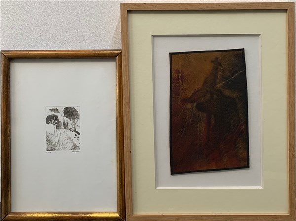 Lotto composto da due dipinti: una tecnica mista di Tonelli (cm 27x17,5) e una acquaforte di Paolucci (cm 10x8). In cornici
