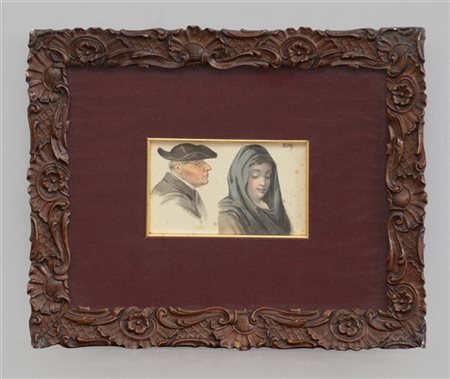 Scuola del XIX Secolo "Ritratti" acquarello (cm 9,5x16) In cornice di legno int