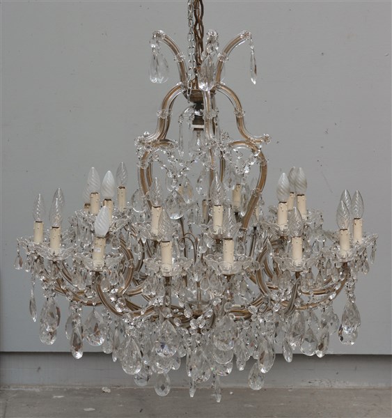 Lampadario a ventisei luci dispopste su due file decorato da pendagli e pendent