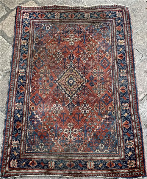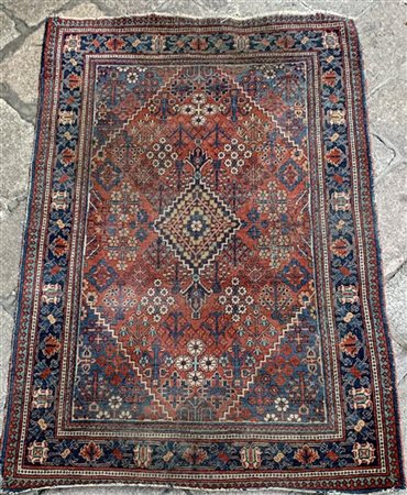 Tappeto Joshagan, Persia, inizio secolo XX. Decoro floreale su fondo rosso (Gravi difetti) (cm 199x128)