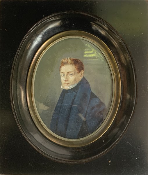Scuola del secolo XIX "Ritratto di uomo" miniatura ovale su avorio (cm 9x7,5) In cornice (restauri)