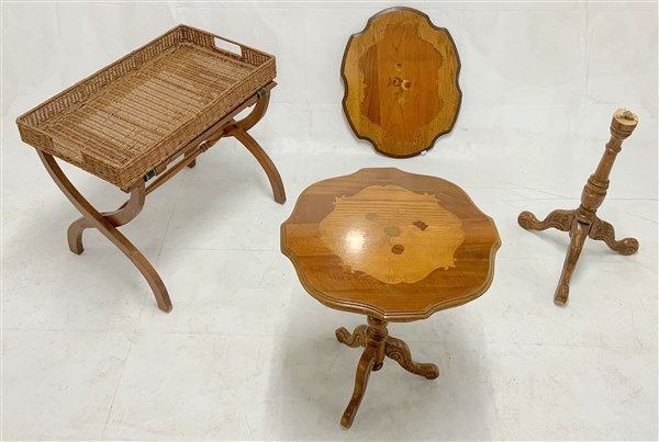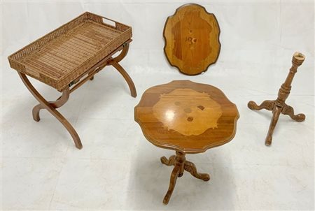 Lotto composto da due tavolini di forma sagomata ed uno con gambe a lira e piano a vassoio