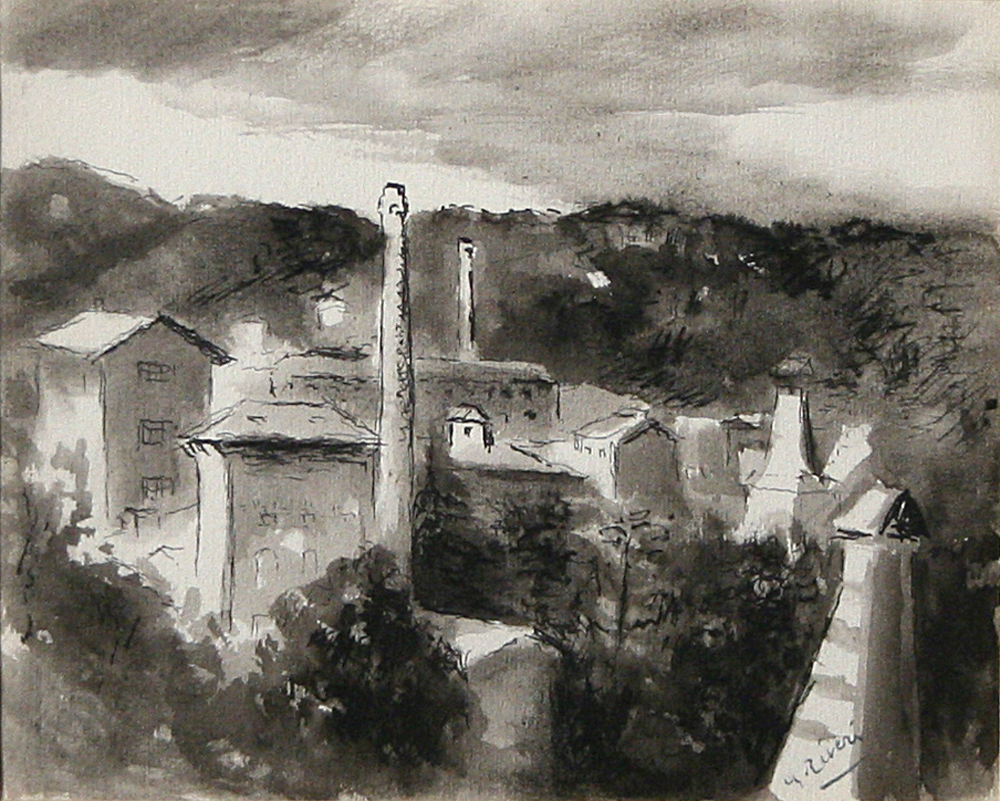 ALBERTO ZIVERI Roma 02/12/1908 - 1989 Paesaggio china acquerellata su carta cm. 14x18, firma in basso a destra.