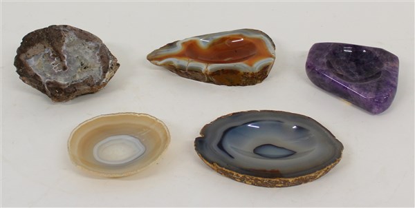 Lotto composto da cinque fra posaceneri e fermacarte in pietre dure