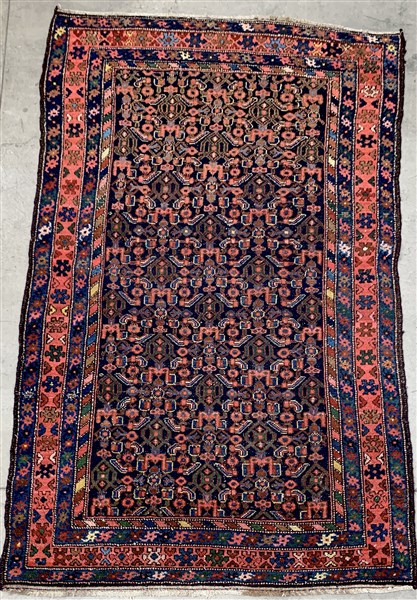 Tappeto Hamadan, Persia, inizio secolo XX. Decoro Herati su campo blu (cm 208x1