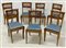 Gruppo di sette sedie in legno con schienale a cartella traforata, gambe a scia