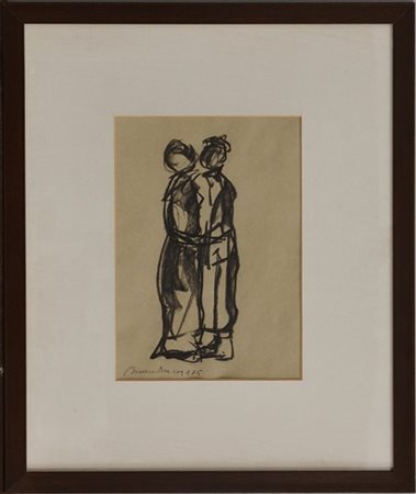 Mimmo Manduca "Figure" 1975, carboncino su carta (cm 33x23), firmato e datato in