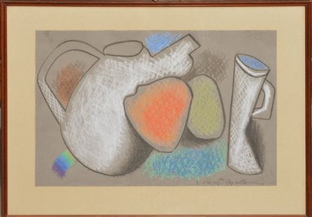 "Senza titolo" 1967, gessetti colorati su carta (cm 33x48), firmata e datata in basso a destra