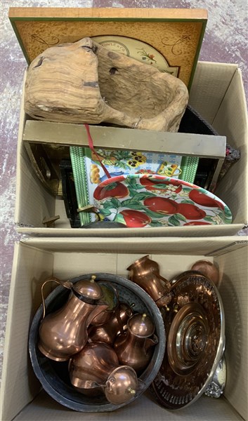Due cartoni contenenti numerosi oggetti d'uso di diverso materiale