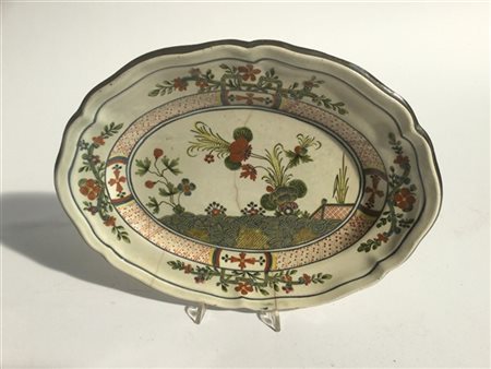 Vassoio in ceramica decorato a fiori policromi (cm 32x25) (difetti e restauri)