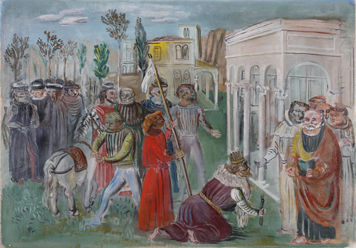 GUIDO PAJETTA Monza (Mi) 08/02/1898 - Milano 15/02/1987 Leggenda, 1932 olio su tela cm. 70x100, opera non firmata, dichiarazione d'autenticità dell'artista eseguita nel 1982 al retro, pubblicato su "Guido Pajetta, catalogo generale ragionato dei dipinti", volume primo, 1914-1963, a cura di Enrico Crispolti, Edizioni Mazzotta, al numero 1932/10, pagina 76.