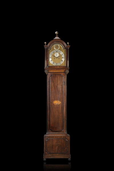 WILLIAM MOORE LONDON Orologio a cassalunga con cassa in legno intarsiato e last