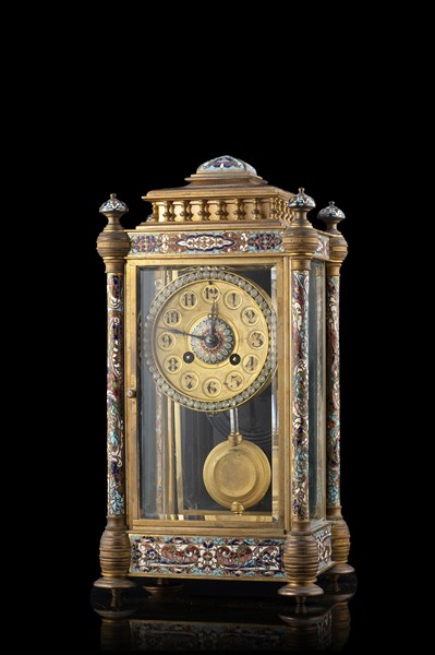 Cassa di forma parallelepipeda decorata con smalti cloisonné.