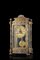Quadrante in metallo dorato con cifre arabe inscritte in finte cartouches tonde.