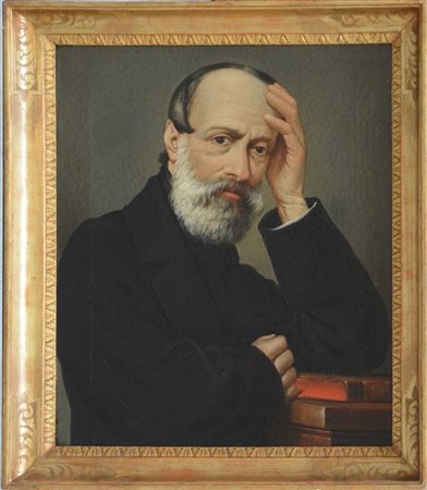 Ignoto lombardo del XIX Secolo "Ritratto di Giuseppe Mazzini" olio su tela (cm 60x50) In cornice