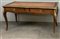 Scrivania diplomatica lastronata in legni vari a due cassetti con profili e mon