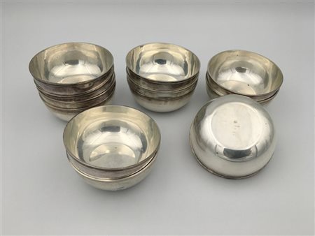 Gruppo di dodici lavadita in argento a corpo liscio. Argentiere Miracoli, Milan